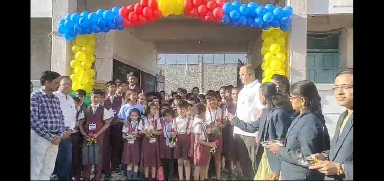 पंढरपूर एज्युकेशन सोसायटी संचलित ,पंचरत्न इंग्लिश स्कूलमध्ये पहिल्याच दिवशी उपस्थित विद्यार्थ्यांचे पुष्पगुच्छ देऊन जंगी स्वागत, विद्यार्थी -विद्यार्थिनींमध्ये उत्साहाचे वातावरण